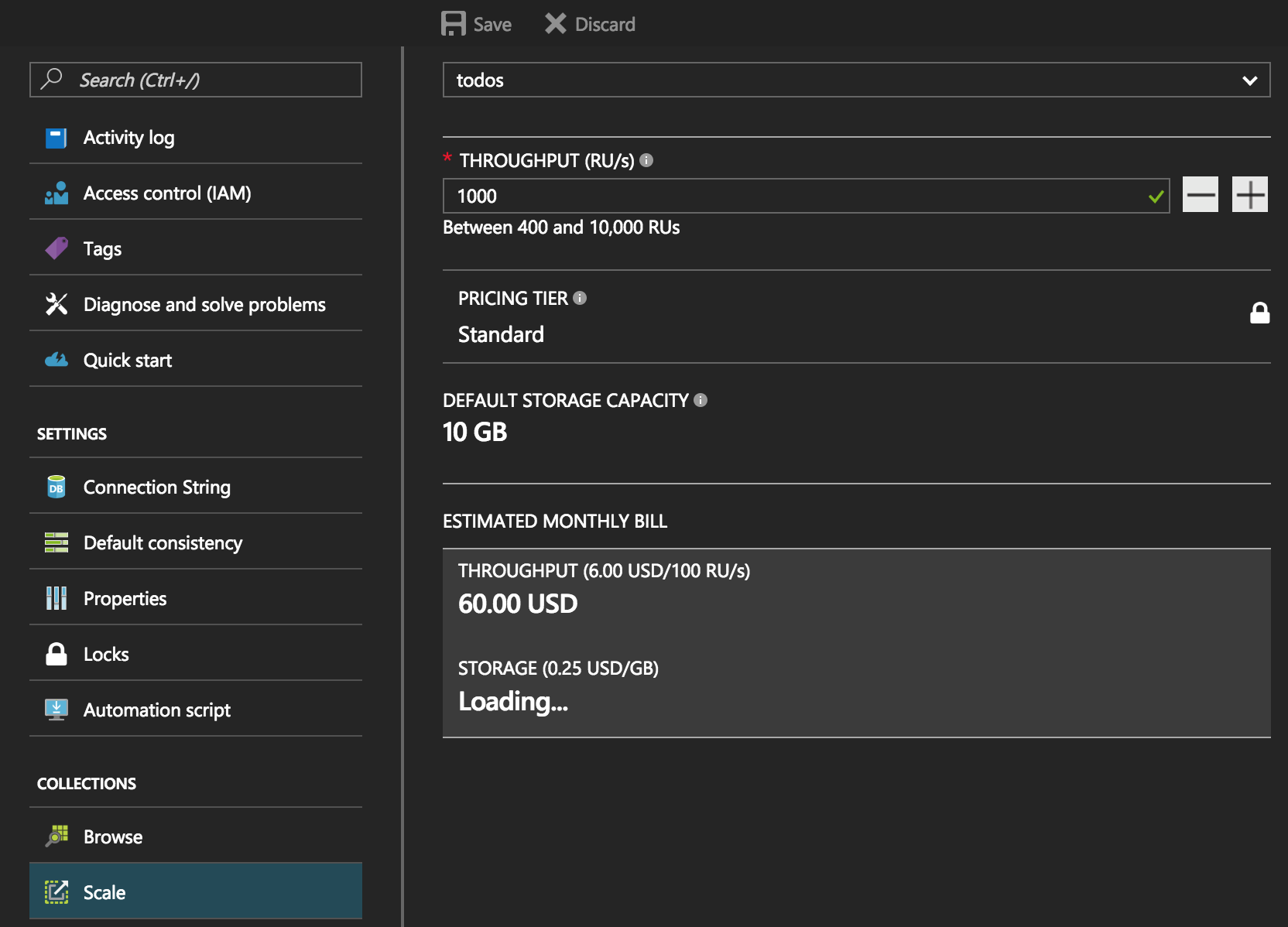 When needed, we could switch back to the DocumentDB instance, and scale up (or down) the reserved throughput that our MongoDB instance needs, and benefit from the added traffic without needing to manage any infrastructure manually.