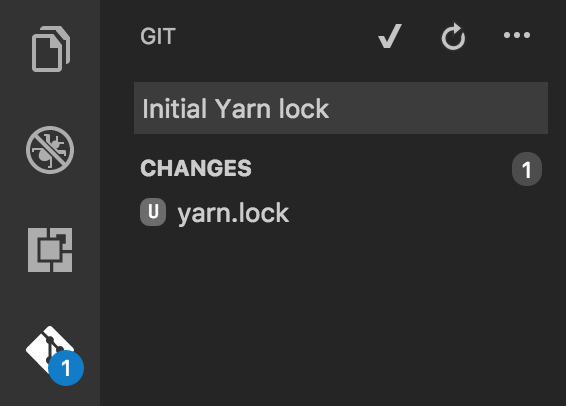 It is encouraged that this file be checked into source control, and to do this, you can easily switch to the integrated Git tab in VS Code (the one with the Git logo), and notice the newly added file. You can type in a commit message, and type CMD+Enter (or click the checkmark icon) in order to stage/commit the change locally.