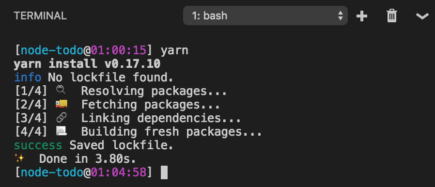 Installing the app's dependencies via Yarn resulted in a yarn.lock file being generated, which provides a predictable way to re-acquire the exact same dependencies in the future, without any surprises in either CI builds, production deployments or other developer's machines.